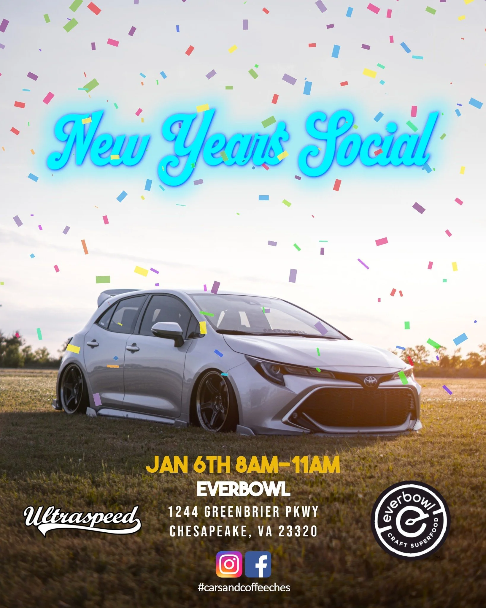 Join Team Ultraspeed on Saturday for a cars and coffee New Year's Social! Enjoy great cars and company while you grab an acai bowl from Everbowl and something warm, or iced, from one of our favs, Peake Coffee. We can't wait to see you in 2024!