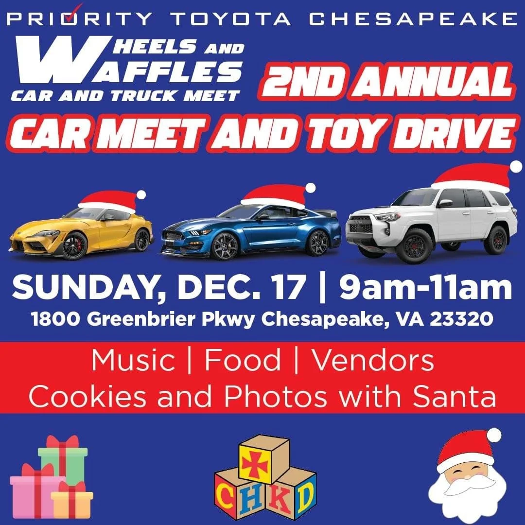 Our last event of 2023 is next Sunday and we would love to have you. This year we are partnering with CHKD and help put a smile on children’s faces. Come check out some vendors, and enjoy cookies with Santa. Bring a new, unwrapped to to donate to CHKD and geta photo with Santa! Walk around, enjoy some coffee, yummy food trucks, neat raffles, music, and check out the sweet rides. Bring your classics, exotics, imports, muscles, trucks, jeeps, bikes, and golf carts to show! No burnouts, loud music, or loud revving. We can't wait to see you there. Happy holidays and appreciate the support.